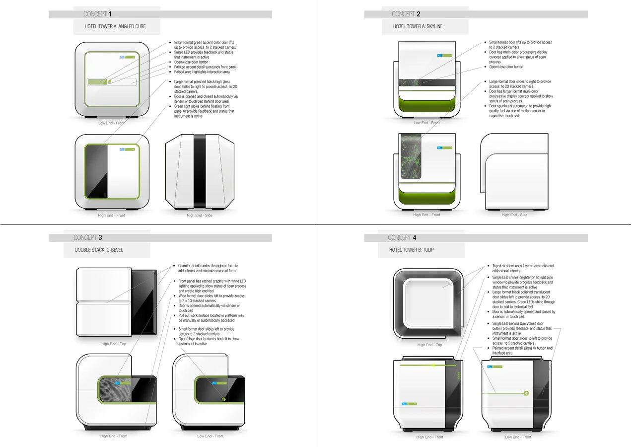 Explore industrial design appearance concepts and a family look for a new laboratory product with two models